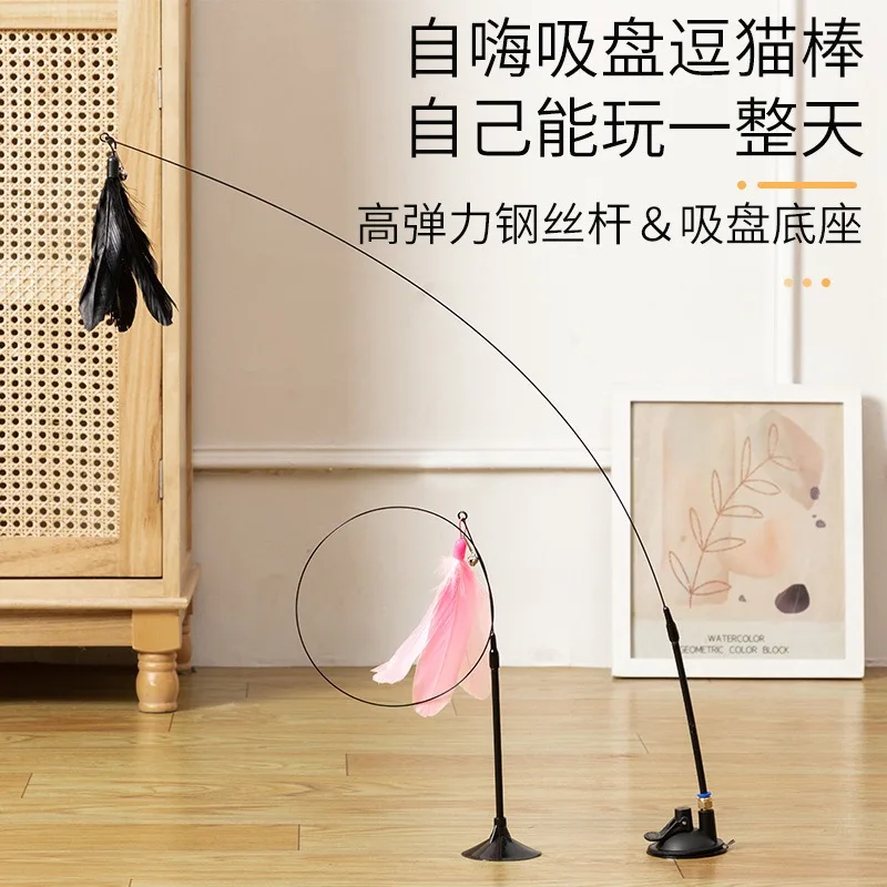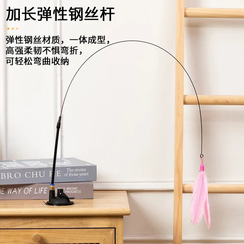 Cats Toys Feathers Wand Interactive Toy Kitten Toys with Super Suction Cup Detachable 2 PCS Feather Replacements Cat Accesorios